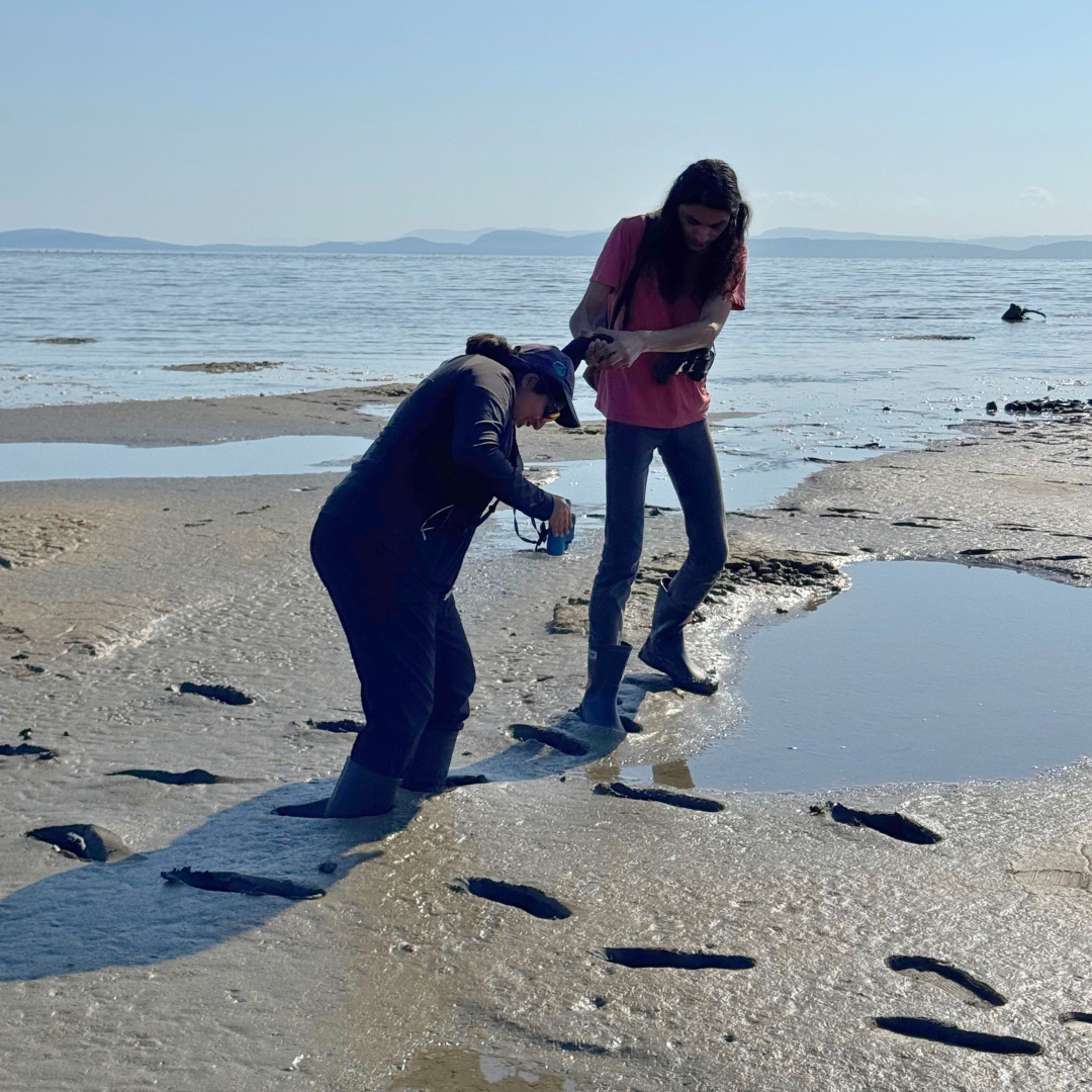 Consisting of algae, bacteria, and organic matter, biofilm serves as food for invertebrates and plays a crucial role in nutrient cycling by making nitrogen and phosphorus that help the growth of other phytoplankton and seagrass. Juvenile fish like herring then feed on these invertebrates and also use biofilm as a habitat for protection as they grow. Once they grow, these smaller fish serve as prey to larger fish like salmon, which also use seagrass for protection as they grow, and a myriad of birds. Thus, an imbalance in this biofilm-based ecosystem would ultimately cause disruption in energy transfer across key cascade levels. A drop in smaller fish like herring would cause changes in salmon populations which are the main prey for Southern Resident killer whales. The nitrifying bacteria also present in the biofilm help in the maintenance of water quality and nutrient cycling in the waters. In many ways, protecting biofilm is protecting the overall health of the Salish Sea!