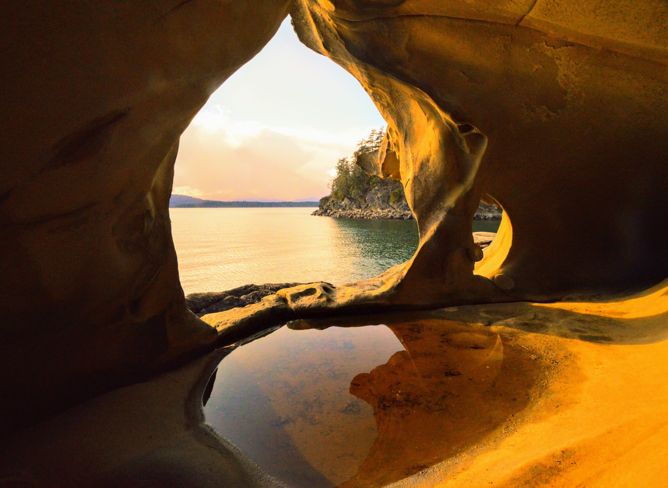 - Erin MacKenzie: Beautiful views of the Salish Sea from inside a sandstone cave on Gabriola Island that is estimated to be 3000 years old.
