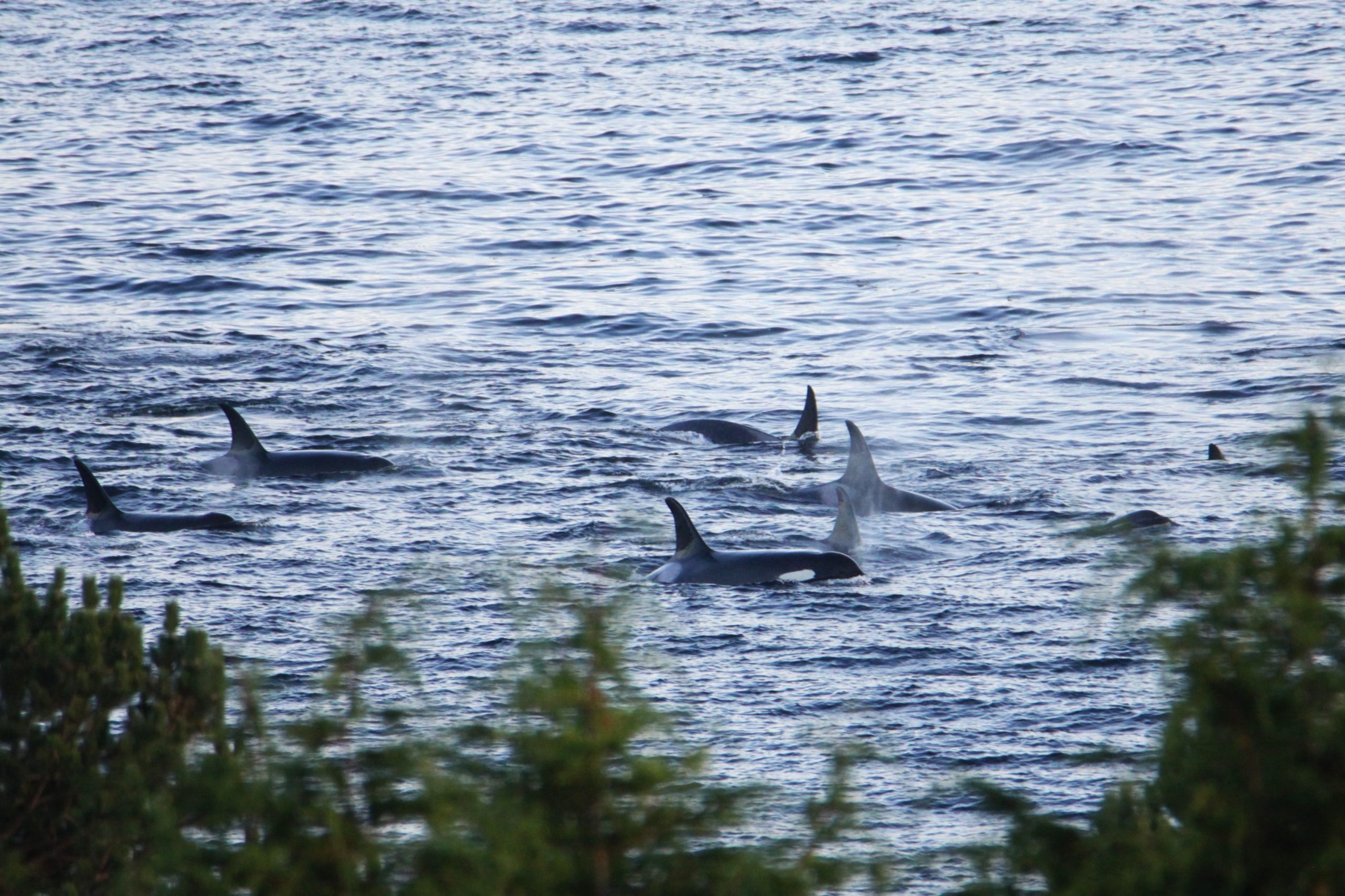 - Kimberly Nielsen: Members of J-pod travel up the coast of San Juan Island in their Salish Sea core summer habitat (photo taken while conducting SRKW research with Oceans Initiative).