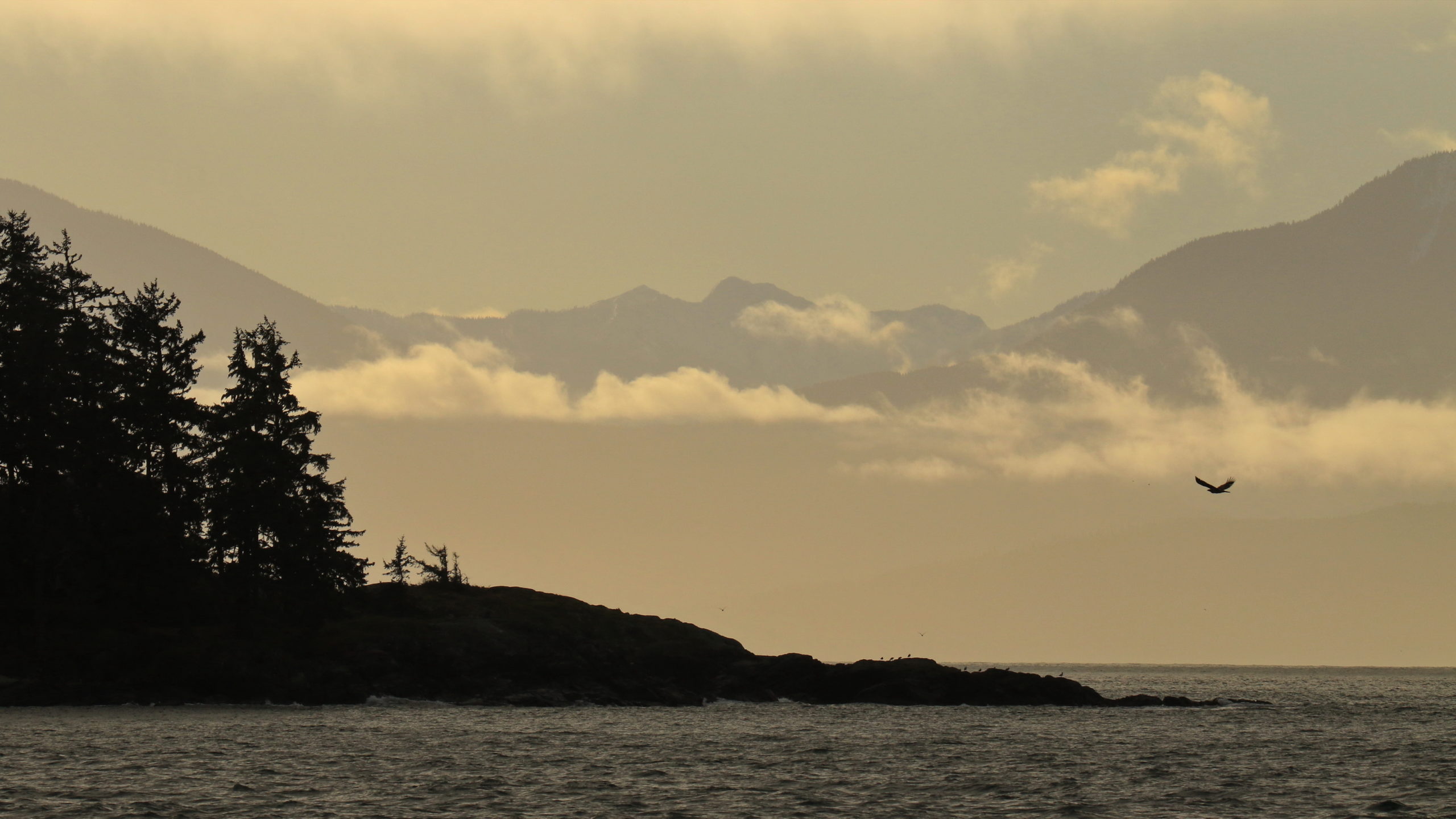 - Shayne Kaye: I was shooting off Whiffin Spit in Sooke and, after waiting quite a while, a bald eagle finally flew into the frame I had lined up with the distant shoreline, mountains, and some great low clouds.