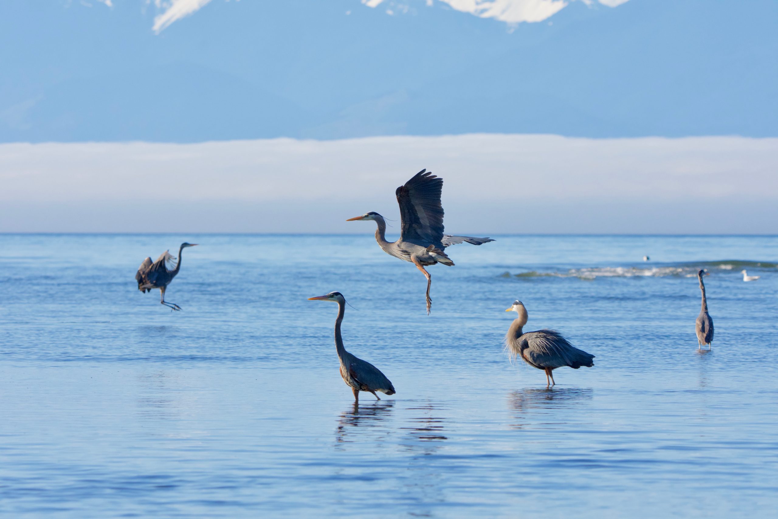 - Shayne Kaye: There’s a beach about 10km from Victoria that gives a perfectly lined up view of the distant Mt. Baker above the city. I knew the sunrise would be lined up this morning, and I was lucky enough to catch a fishing Great Blue Heron to complete the scene. Metchosin.